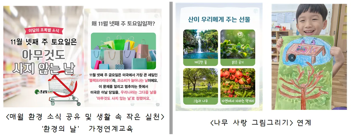 일상생활 속에서 물 절약, 에너지 절약, 분리수거 등 환경 보호 활동을 실천하며 환경 문제에 대한 책임 의식을 기릅니다. 자연을 아끼는 마음을 바탕으로 ‘지속 가능한 교육(ESD)’을 실현하며, 작은 실천이 세상을 바꿀 수 있다는 긍정적인 가치관과 환경 감수성을 함양합니다.